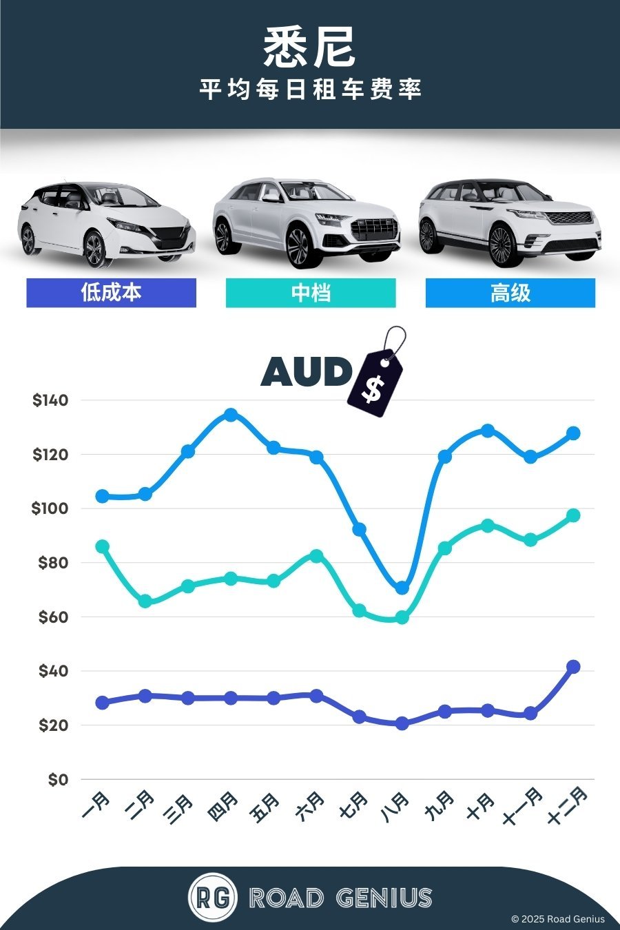 通过 Road Genius,在悉尼租车非常便捷。我们不收取预订费,帮你轻松比较全澳大利亚数十家租车公司的车型及价格。无论你想在机场便捷取车,还是在市区或郊区选择更实惠的门店,都能一站式查看所有选项,轻松选到最合适的车辆。