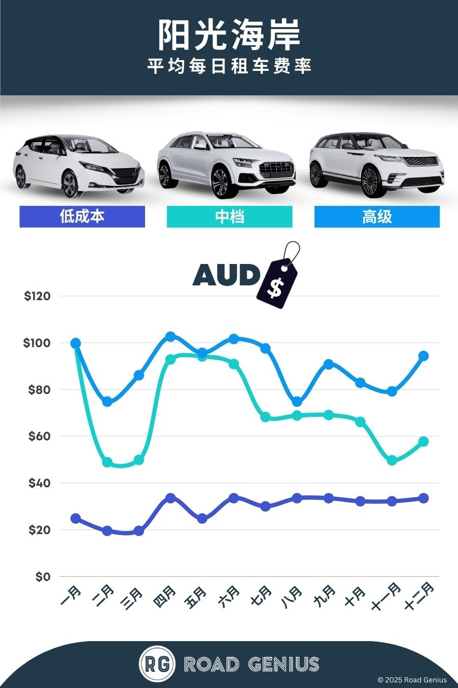 在阳光海岸租车的平均费用约为每天AUD $79,最低价格可低至每天AUD $20。