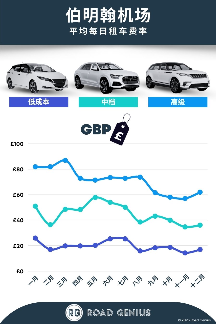 平均而言,伯明翰机场 的汽车租赁每日费用约为 €45,最低租金为每日 €14。