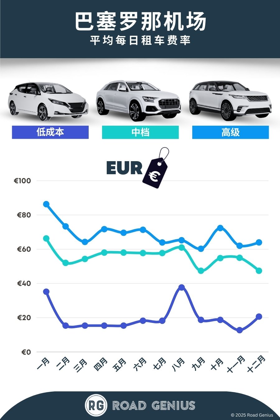 在巴塞罗那埃尔普拉特机场(BCN),你可以通过 Road Genius 一站式对比各大租车公司的价格。车型涵盖经济型小车、大型 SUV、MPV 以及 7/9 座商务车,价格实惠,门店分布广泛。你可以选择在 1 号或 2 号航站楼内取车,或搭乘接驳巴士前往机场外的门店。取车后,即可便捷驶上 C-31 或 AP-7 高速,前往巴塞罗那市区、锡切斯(Sitges)、塔拉戈纳(Tarragona)和布拉瓦海岸。如果计划在夏季旺季出行,建议你提前预订,并优先选择非高峰时段取车,避开排队高峰。
