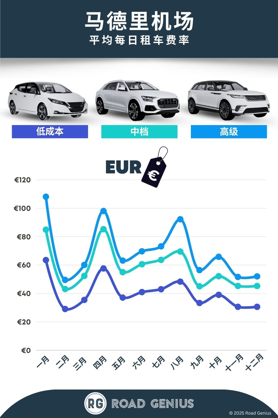 Road Genius 帮你轻松在马德里机场(MAD)找到合适的租车方案:一站式比价,直接预订。你可以在 T1、T4 航站楼内选择主流租车公司,也可以选机场外门店。车型丰富,从经济型到 SUV、自动挡应有尽有。取车后可便捷驶上 M-40 或 A-2 高速公路,非高峰时段约 20 至 30 分钟即可到达马德里市中心