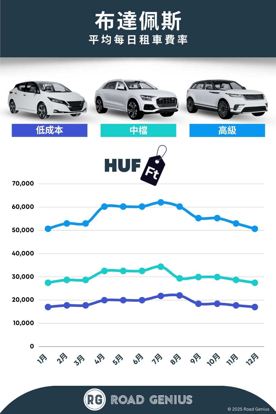 透過 Road Genius,一次比較布達佩斯多家租車公司的車款與價格。從經濟實惠的小型車,到寬敞舒適的 SUV 與 MPV,你都能在市中心或 布達佩斯機場(BUD) 找到便利的取車點。比價時,你可依駕駛習慣與行程需求,選擇手排車或自排車,並留意機場附加費、里程限制與營業時間等細節。準備就緒後,就能輕鬆開車前往聖安德烈(Szentendre)、戈多洛(Gödöllő)或多瑙河灣,安排一趟愜意的一日遊。