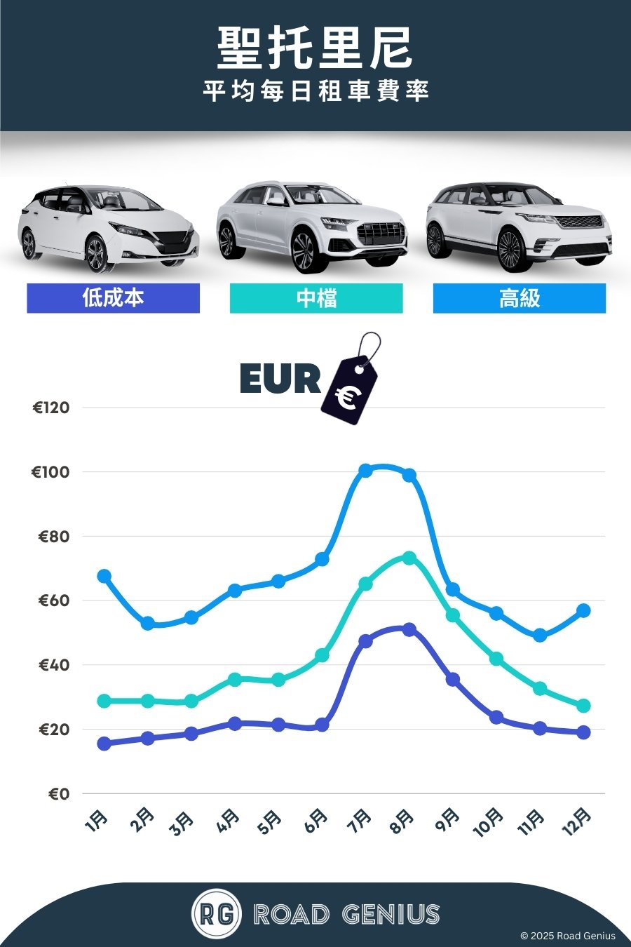 依季節預訂:旺季(7–8 月)建議提前 2–3 個月預訂,特別是供應較少的自排車,很快就會被租完。在淡、旺季的交替期間,價格波動較大,多加比較才能找到最划算的方案。