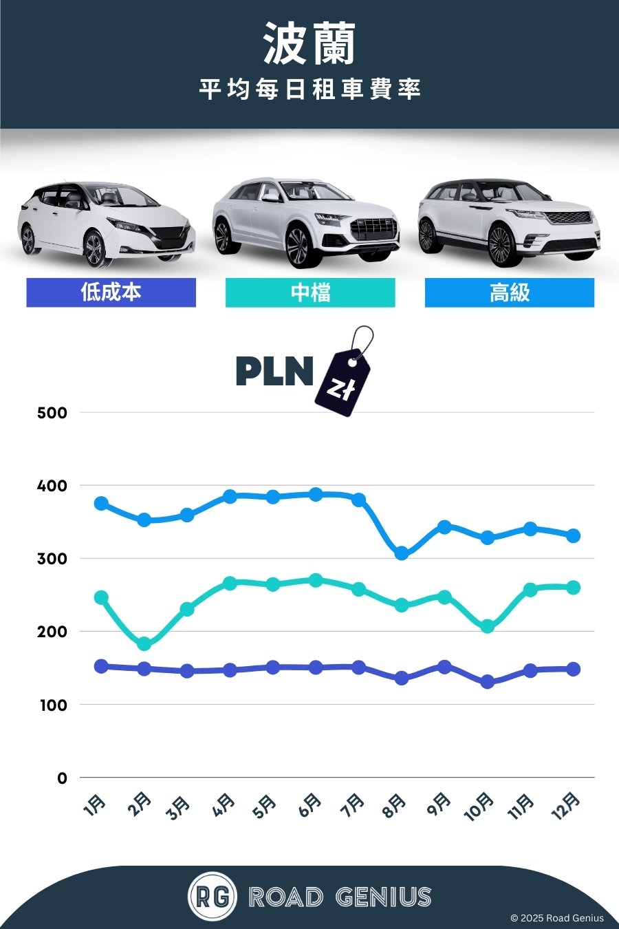 透過 Road Genius,你能輕鬆比較波蘭各大租車公司的價格,完全免手續費。你可以在華沙蕭邦機場、克拉科夫機場、格但斯克機場或各大城市的市中心據點取車,並自由篩選自排車、SUV、兒童座椅與異地還車等選項。夏季為旅遊旺季,建議提前預訂,不僅有更多車款可選,也更容易找到優惠價格。