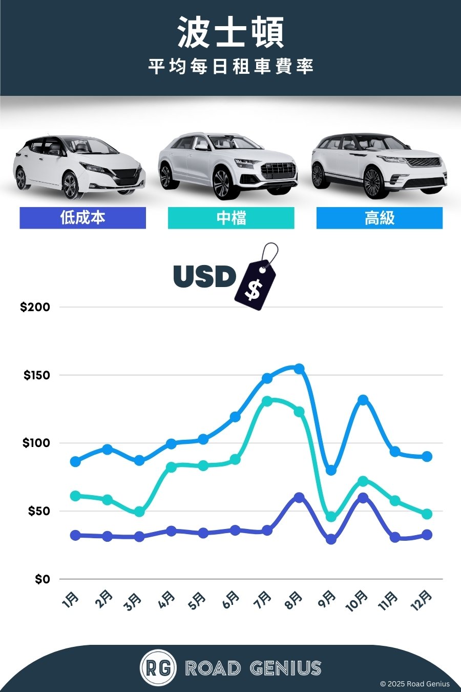 把握訂車時機。在 7–8 月旅遊旺季、波士頓馬拉松週與大學開學季期間,建議提前 2–4 週預訂。淡季時則可多觀察價格走勢,若發現降價可隨時重新預訂。