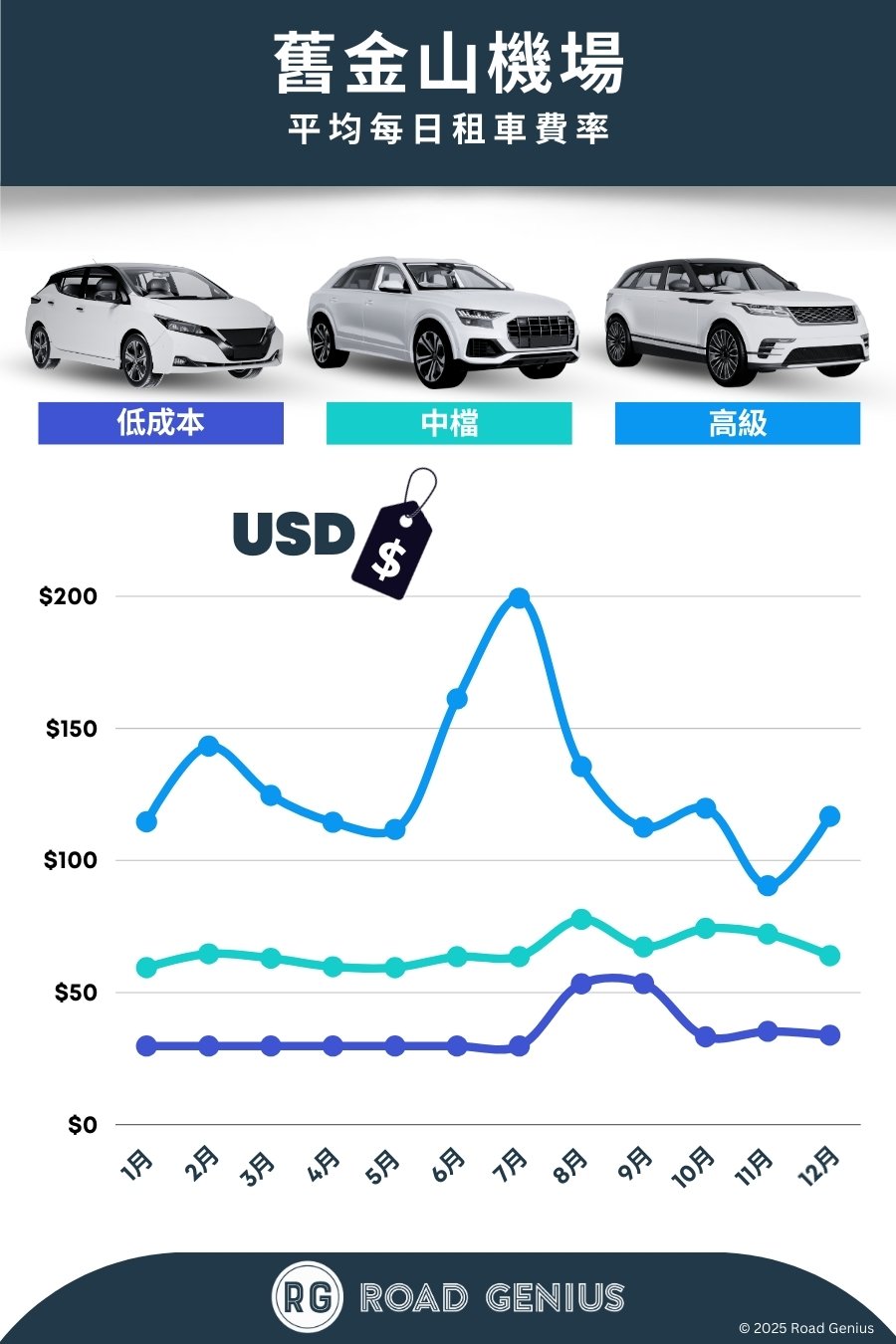 留意「旺季與特殊活動」:舊金山在暑假、連續假期與大型會展期間的租車價格通常會上漲,建議提前 4–6 週預訂。淡季(如冬季)的選擇較多,出發前 2–3 週預訂通常還能找到優惠價格。
