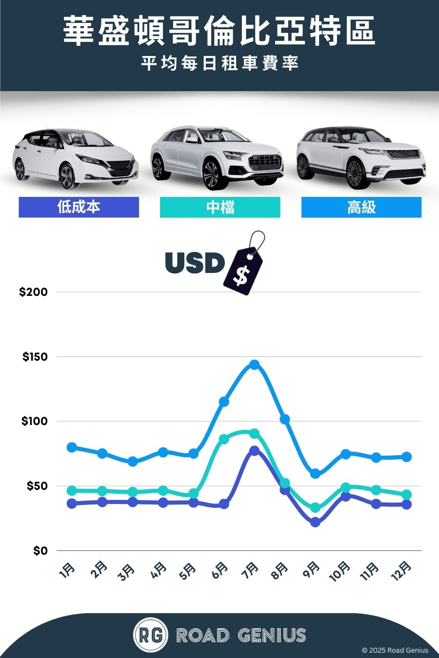 善用週末優惠:華府的週末租金往往更便宜。將取車日設為週五、還車日設為週一,總費用可能比只租平日更划算。