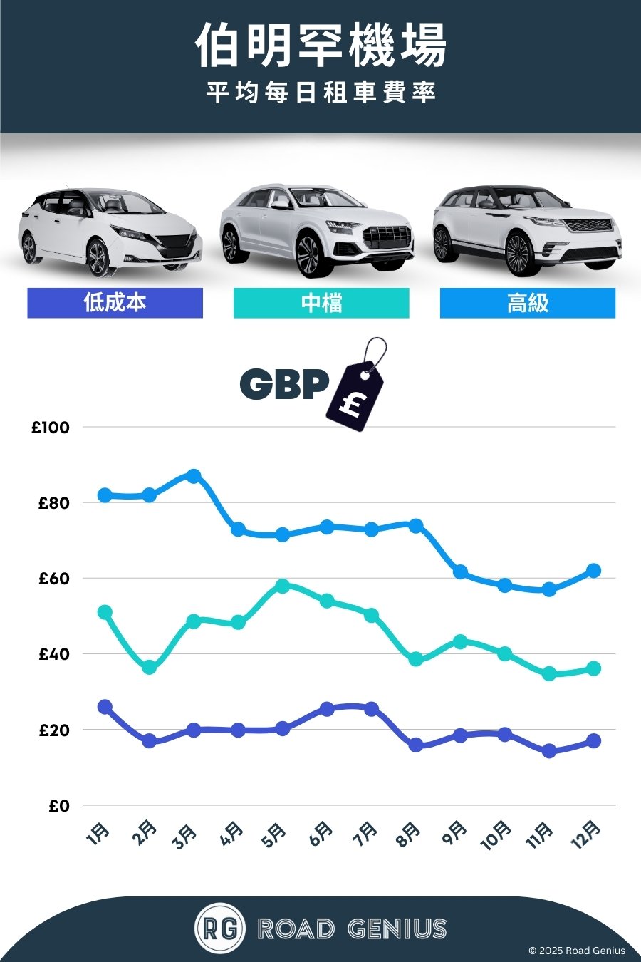 比較不同地點的價格: 機場內取車的費用通常比市區或場外據點高出 15–20%。若你計劃先在伯明翰市區停留,不妨搭火車進城後再租車,藉此省下機場附加費。