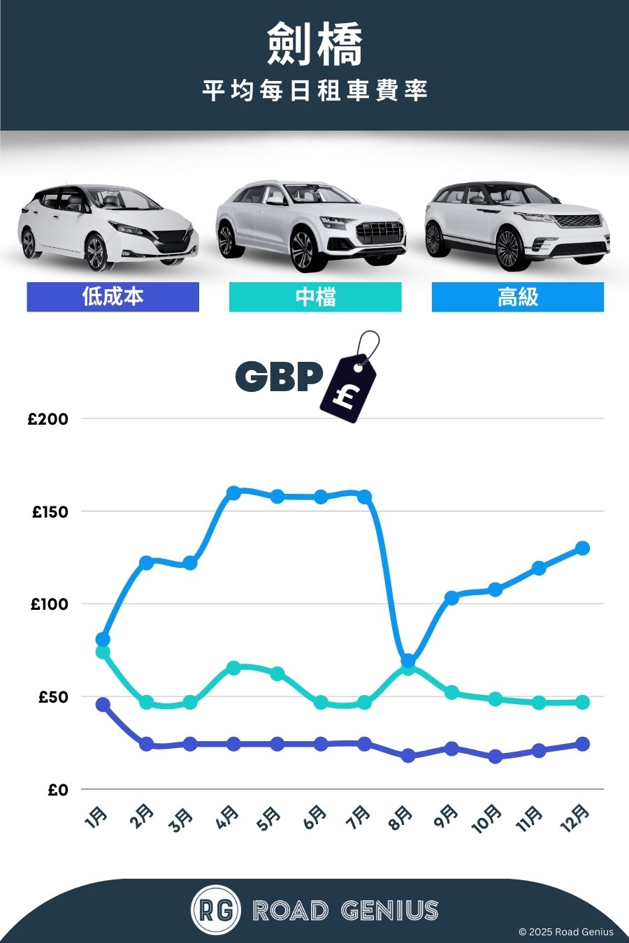 取車點遍佈市中心及劍橋火車站周邊,方便你取車後直接開往伊利(Ely)、紐馬凱特(Newmarket)、達克斯福德(Duxford)或諾福克海岸。我們為你比較 Enterprise、Avis、Budget、Europcar、Hertz、Sixt 等各大品牌在劍橋的租車方案。在大學學期及夏季旅遊旺季,建議提早預訂以確保價格和車款選擇。
