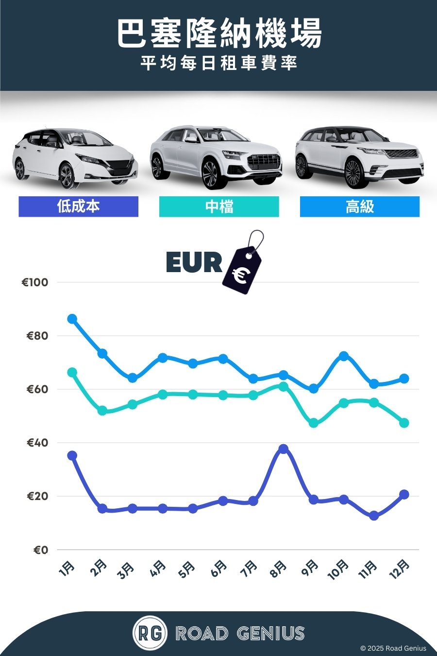 在巴塞隆納-埃爾普拉特機場 (BCN),透過 Road Genius 比較各大租車公司的方案。從經濟型小車、大型 SUV 到 7 至 9 人座廂型車,方便您尋找合適的車款與價格。取車地點選擇彈性,可選在第 1 航廈或第 2 航廈的櫃台,或搭乘免費接駁車前往機場外的租車據點。取車後即可駛上 C-31 或 AP-7 高速公路,方便前往巴塞隆納市區、錫切斯、塔拉戈納與布拉瓦海岸。若您計畫在夏季旅遊旺季造訪,建議提早預訂並考慮在離峰時段取車,以節省排隊等候時間。