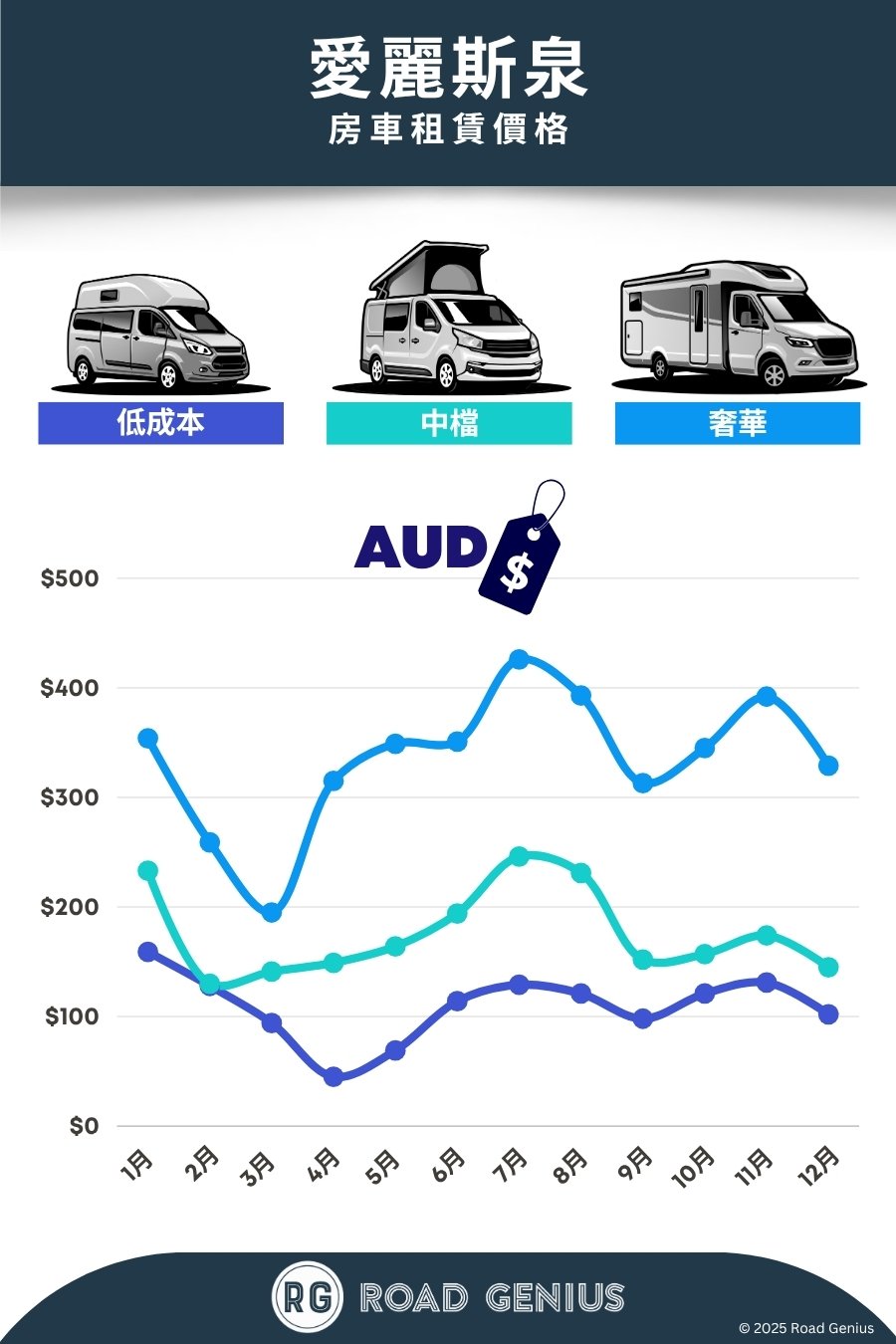 在 Road Genius,您可以一站式比較澳洲各地的露營車租賃選擇,檢視不同公司的車型、價格與配備。愛麗斯泉位於澳洲中心的紅土沙漠地帶,是探索西麥克唐奈山脈、國王峽谷及烏魯魯的主要起點。此處景點間距甚遠,沿途服務設施有限,建議您出發前妥善規劃加油及補水的地點。